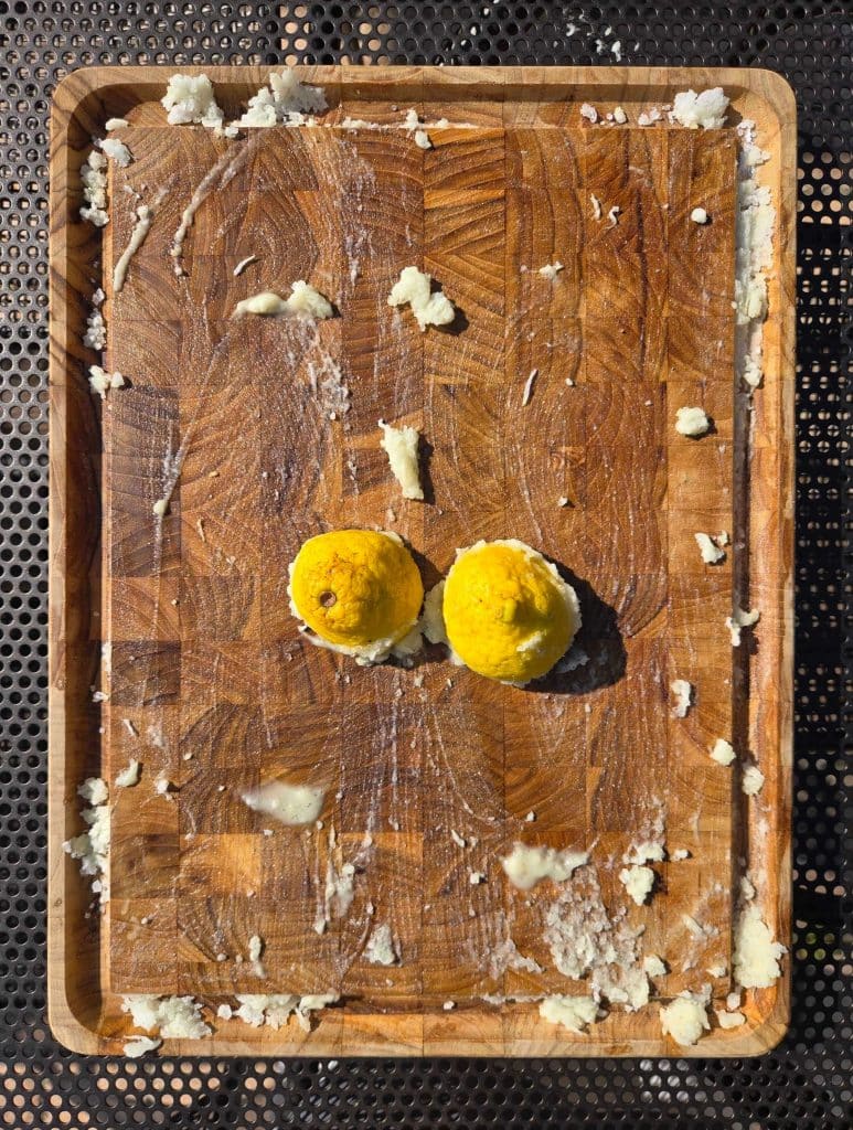 Coupez le citron en deux, pressez le jus sur la planche, puis frottez toute la surface avec les demi-citrons. L’acidité nettoie, désinfecte et laisse un parfum frais.
