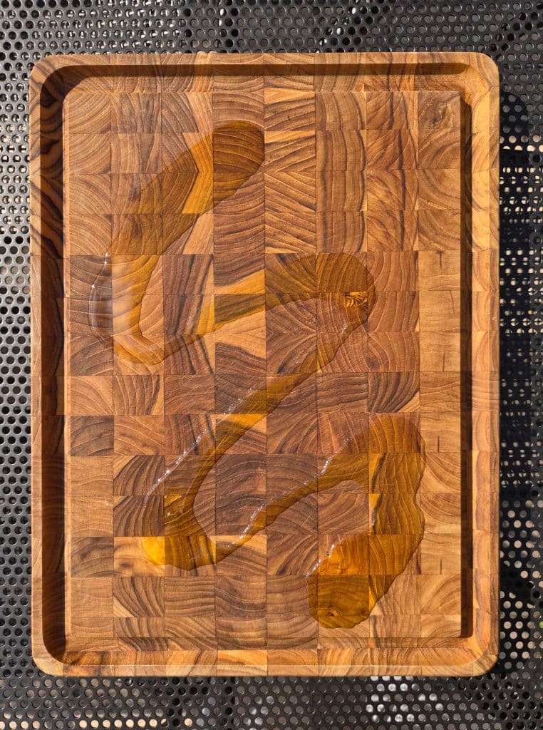 - Huile de lin alimentaire : idéale pour une protection longue durée. Elle pénètre profondément dans le bois, le nourrit en profondeur et forme une barrière durable contre l’eau, les taches et les fissures. C’est le meilleur choix si vous souhaitez un entretien peu fréquent mais efficace, et une planche qui reste solide et hygiénique pendant des années.