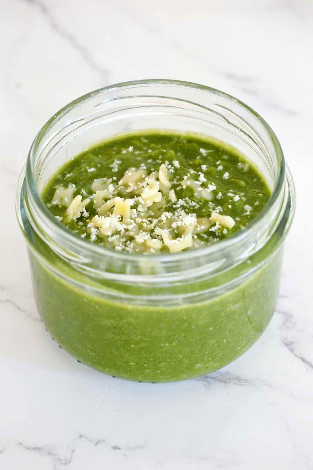 Gros succès auprès de mon petit garçon (9 mois) j’ai mouliné un peu les pâtes avec le pesto pour une introduction des morceaux en douceur 😊